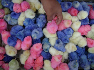then the other photos were the following weekend when i road tripped to Xela.. on the west side of the country to visit my fellow peace corps volunteers for the first time in 2 months.. it was exciting! so this is a picture of dyed chickies! so cute and fuzzy! and then a photo of my friend kate who LOVED the t shirt i bought her because it reminded me of her cat, paloma!!